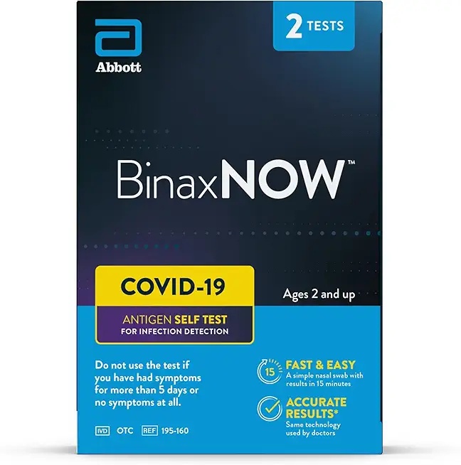BinaxNOW COVID-19 Antigen Self Test – 2 tests per pack. Compact and convenient for quick individual or travel testing. Delivers clear results in just 15 minutes.